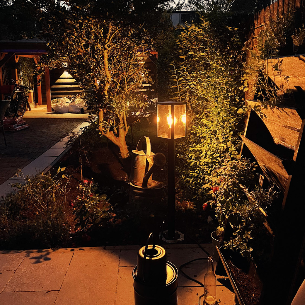 Tip: gebruik grondspots voor borders en bomen, wandlampen voor gevels en schuttingen en sokkellampen of lantaarns voor looppaden.