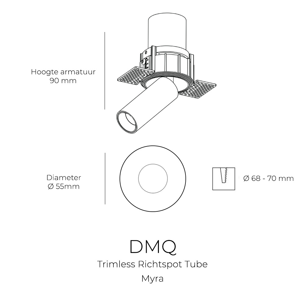 Zoek je een trimless richtspot met een uitgesproken tube-design en maximale flexibiliteit in lichtbeeld? De Myra Trimless Richtspot Tube combineert een strak stucbaar frame met een geïntegreerde LED-lichtbron in een verstelbare kleine tube.