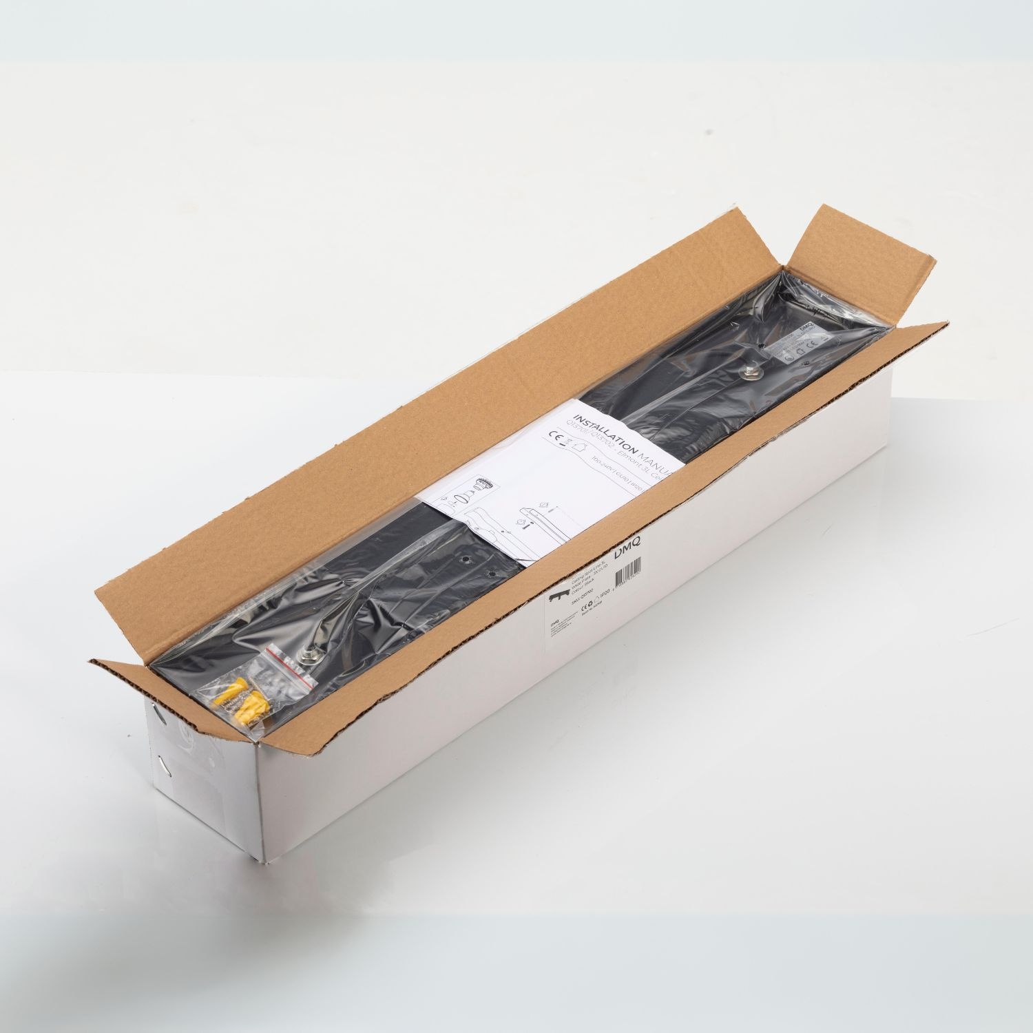 Het armatuur is voorzien van een brede en makkelijk te verwerken montage plaat welke gemaakt is van stevig aluminium. Na montage is de plaat iets verstelbaar is indien je er enkele mm’s naast zat met meten. De bevestiging schroeven hebben we zwart (of wit) mee laten spuiten zodat deze na het ophangen nauwelijks meer zichtbaar zijn. Bij het plaatsen van de GU10 lichtbron kun je eenvoudig de tube / buis er afdraaien om er bij te komen.