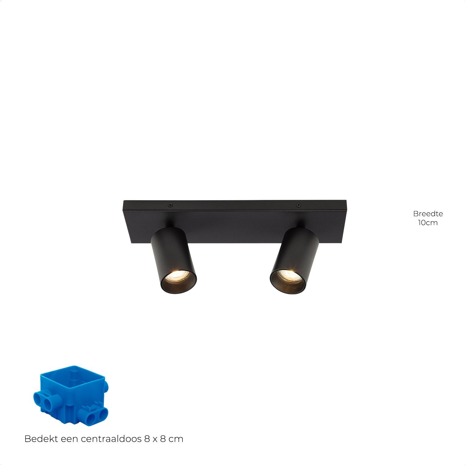 Plafondspot Elmont 2 Zwart - Brede montageplaat 10cm
