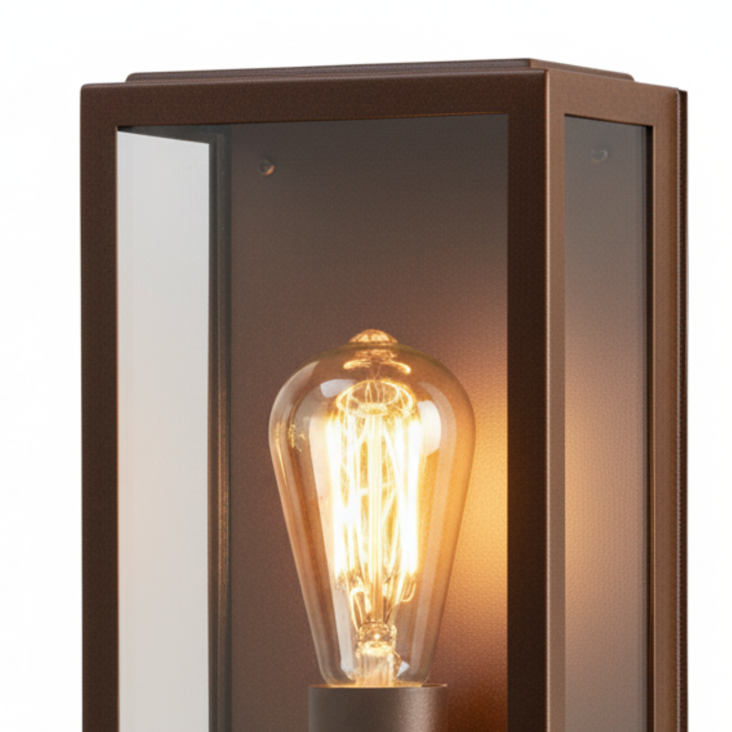 De Boston wandlamp is voorzien van een E27 fitting, hierdoor is er een ruime keuze aan lichtbronnen. Tegenwoordig kun je hier een energie zuinige LED lamp in plaatsen, die functioneel en sfeervol licht geeft. In de afbeelding staat de DMQ Filament ST64 lamp (niet bijgeleverd). De lamp is geschikt voor binnen en buiten. De Boston lamp beschikt over de veiligheidsklasse IP44, hij is dus bestemd tegen de regen!